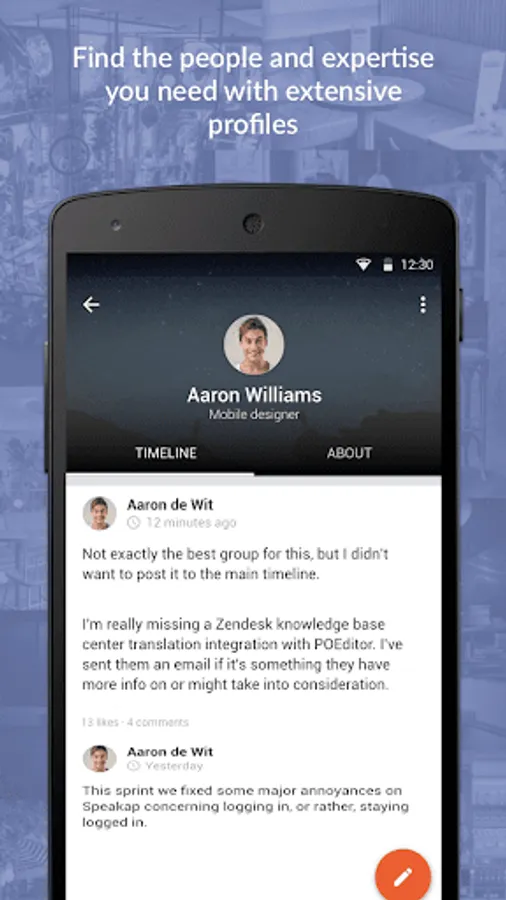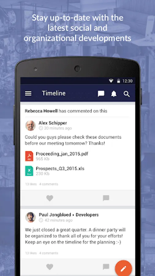 Share new knowledge, ideas and internal achievements quickly and easily with the rest of your team, department or organization. Enrich messages with pictures, videos and emoticons. Simply keep track of new posts from your colleagues, organization and partners.