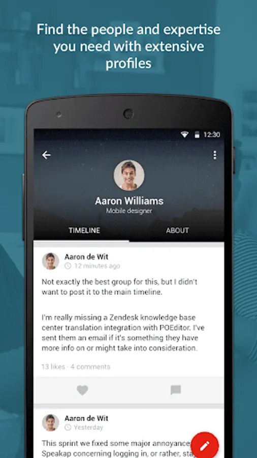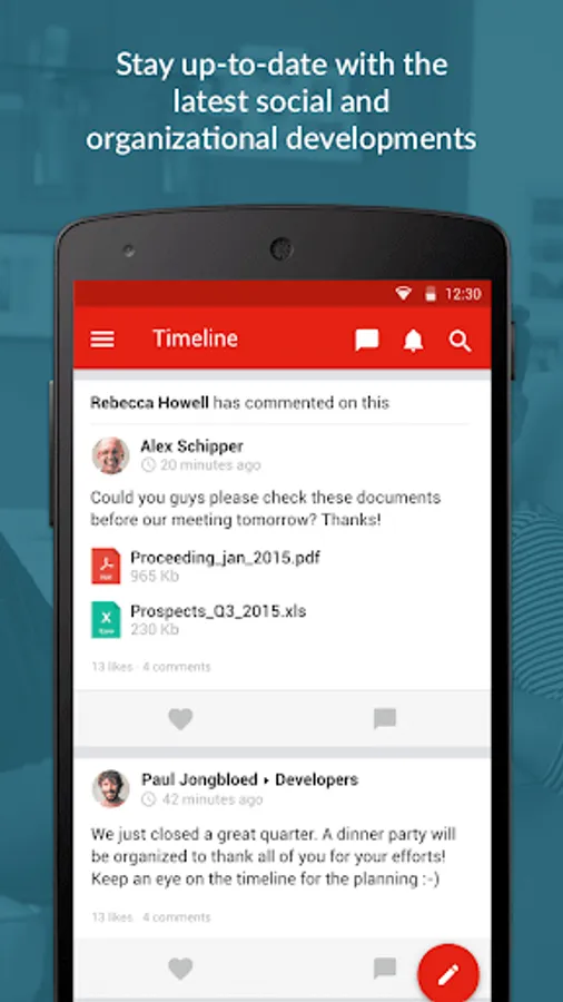 Share new knowledge, ideas and internal achievements quickly and easily with the rest of your team, department or organization. Enrich messages with pictures, videos and emoticons. Simply keep track of new posts from your colleagues, organization and partners.