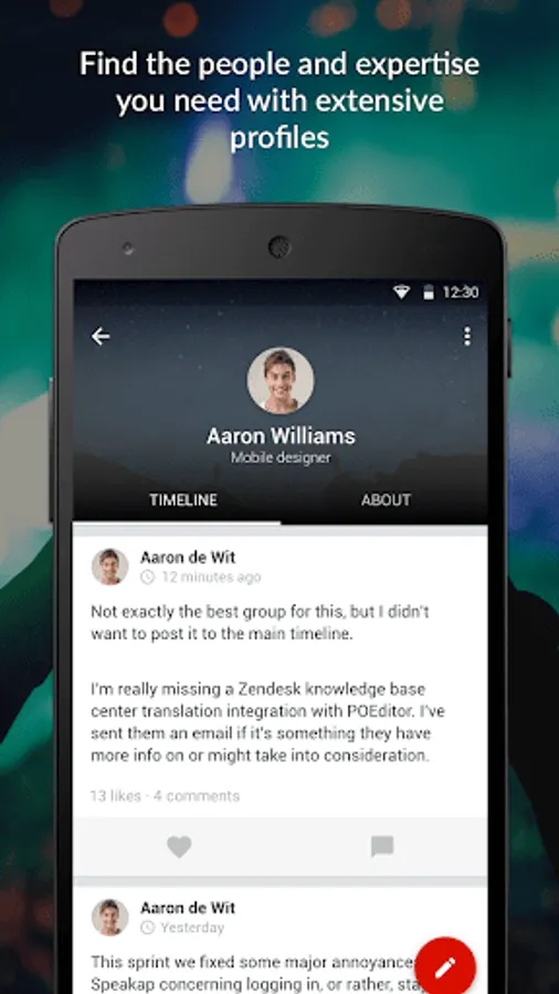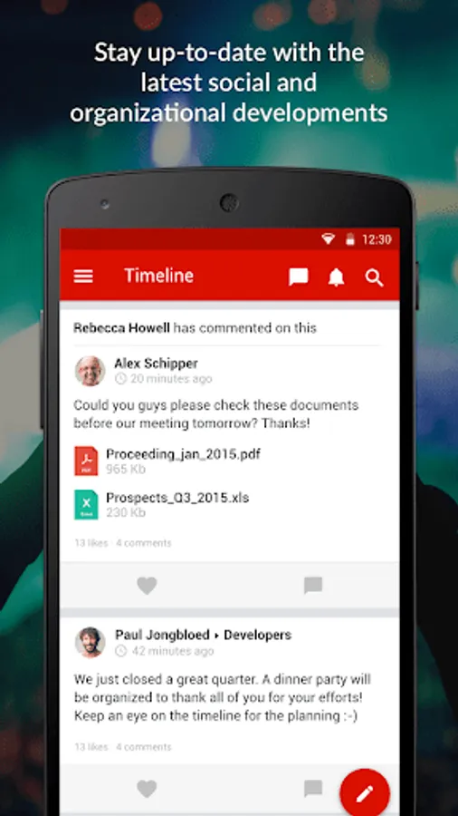 Share new knowledge, ideas and internal achievements quickly and easily with the rest of your team, department or organization. Enrich messages with pictures, videos and emoticons. Simply keep track of new posts from your colleagues, organization and partners.