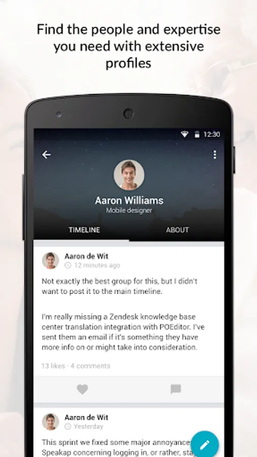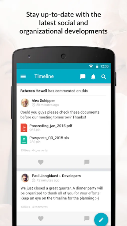 Share new knowledge, ideas and internal achievements quickly and easily with the rest of your team, department or organization. Enrich messages with pictures, videos and emoticons. Simply keep track of new posts from your colleagues, organization and partners.