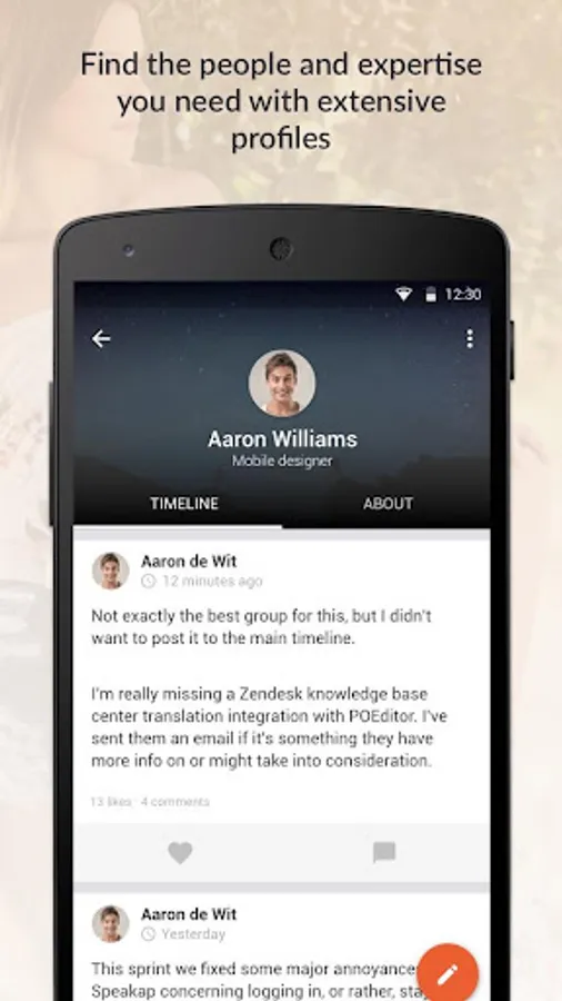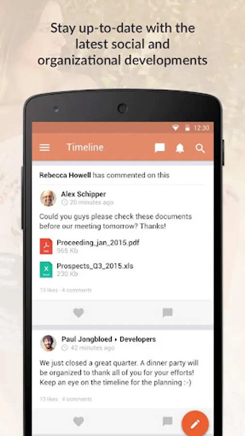 Share new knowledge, ideas and internal achievements quickly and easily with the rest of your team, department or organization. Enrich messages with pictures, videos and emoticons. Simply keep track of new posts from your colleagues, organization and partners.