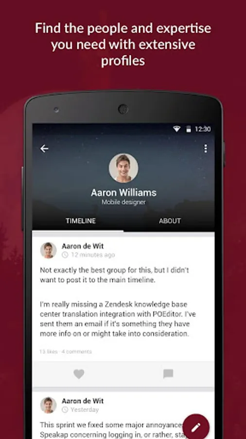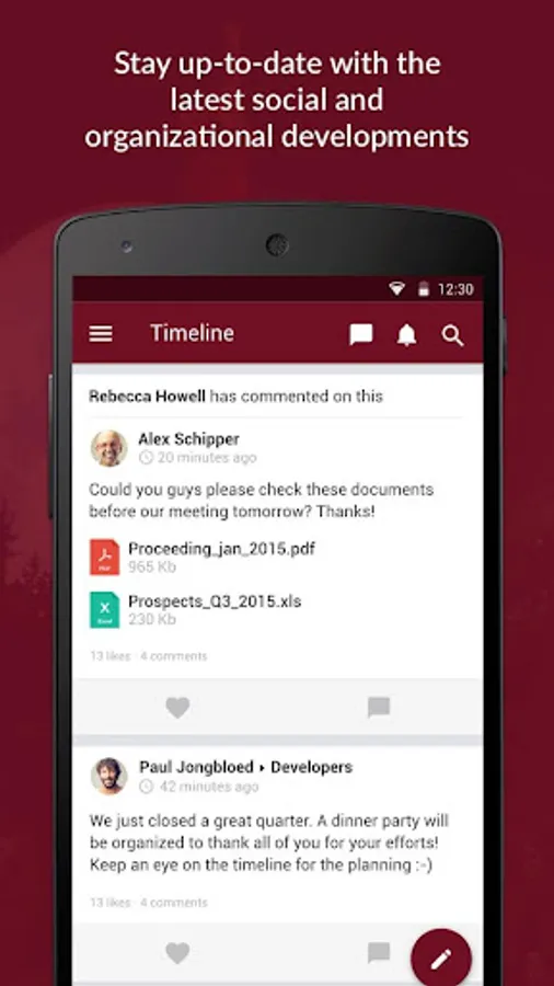 Share new knowledge, ideas and internal achievements quickly and easily with the rest of your team, department or organization. Enrich messages with pictures, videos and emoticons. Simply keep track of new posts from your colleagues, organization and partners.