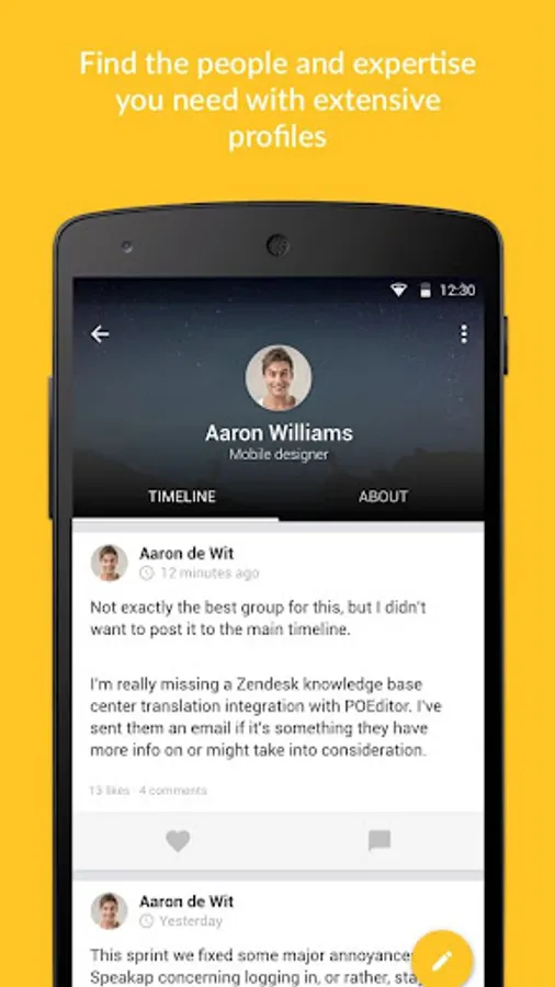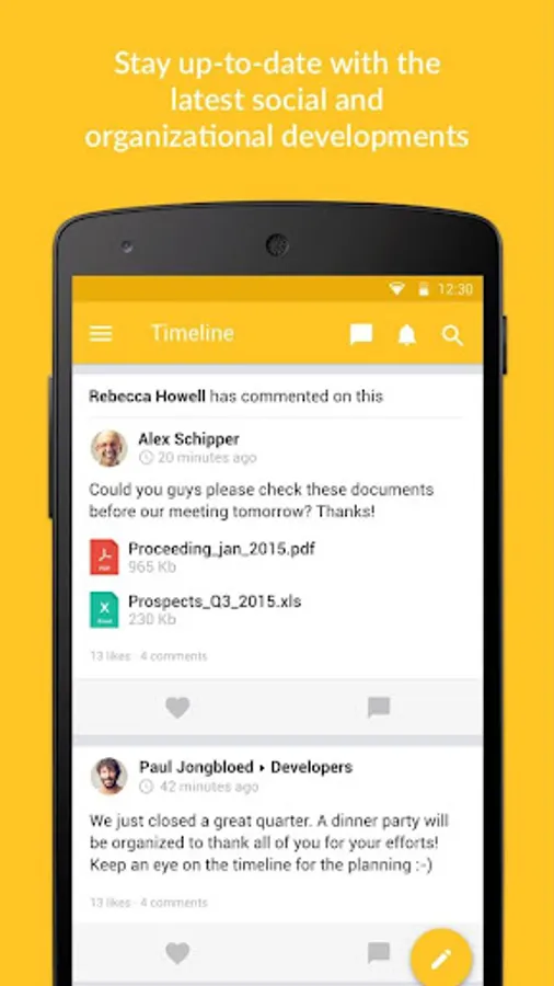 Share new knowledge, ideas and internal achievements quickly and easily with the rest of your team, department or organization. Enrich messages with pictures, videos and emoticons. Simply keep track of new posts from your colleagues, organization and partners.