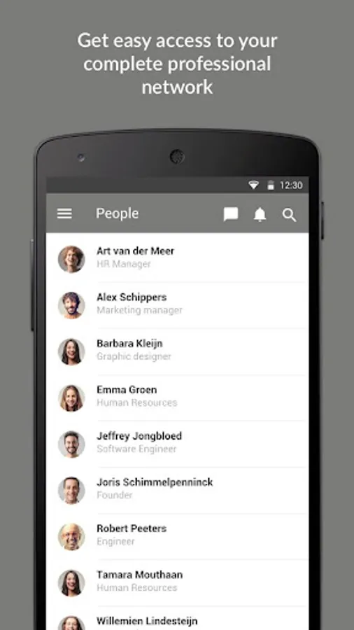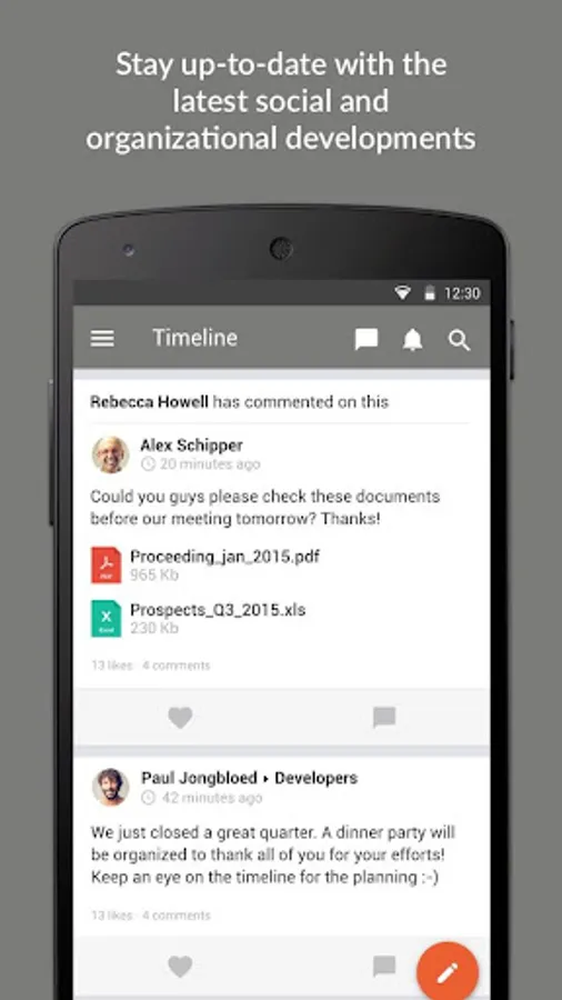 Quickly and easily share new knowledge, ideas and internal successes with the rest of your team, department or organization. You can enrich your messages with images, videos and emoticons. Easily follow messages from your colleagues and the organization. Push notifications ensure that you immediately notice new messages.