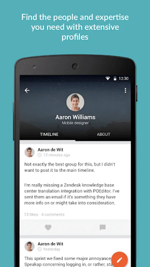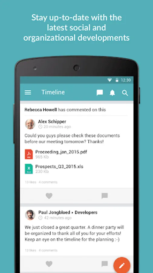 Share new knowledge, ideas and internal achievements quickly and easily with the rest of your team, department or organization. Enrich messages with pictures, videos and emoticons. Simply keep track of new posts from your colleagues, organization and partners.