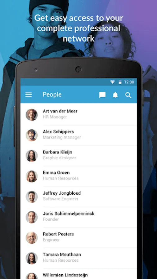 WeConnect is the platform for communication within and outside your organization. It consists of timelines, news feeds and chat features similar to your private social media. All to provide you with a pleasant and familiar way of communicating with colleagues and partners.