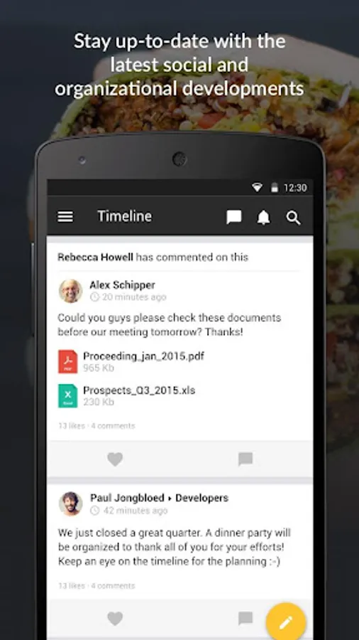 Share new knowledge, ideas and internal achievements quickly and easily with the rest of your team, department or organization. Enrich messages with pictures, videos and emoticons. Simply keep track of new posts from your colleagues, organization and partners.