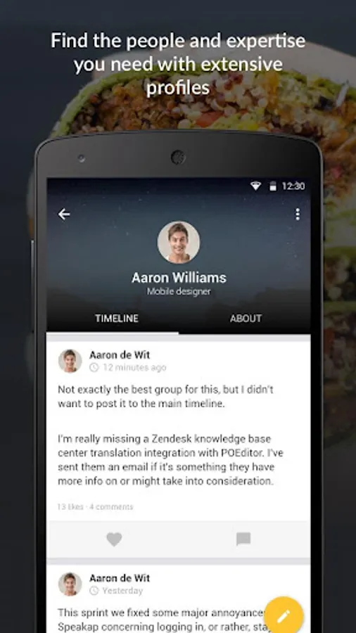 Which Wich is the platform for communication within and outside your organization. It consists of timelines, news feeds and chat features similar to your private social media. All to provide you with a pleasant and familiar way of communicating with colleagues and partners.