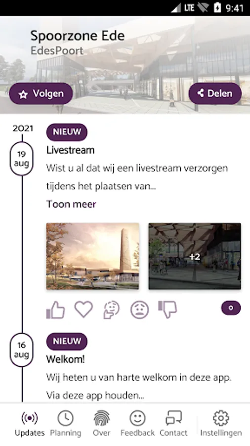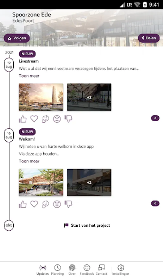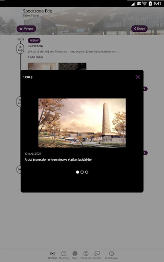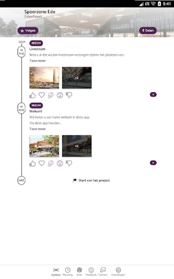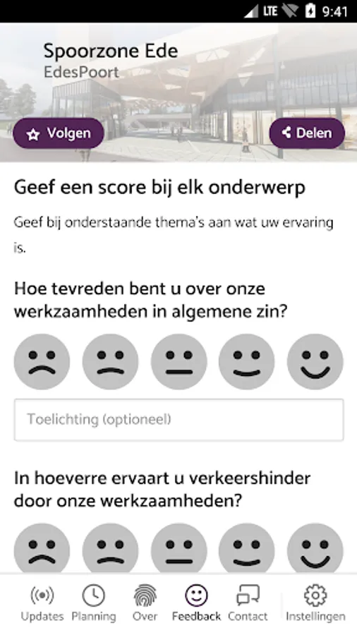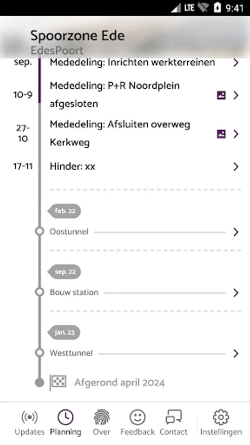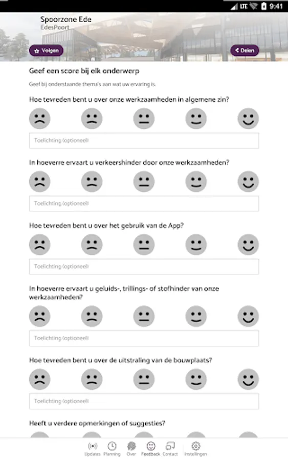 The App Spoorzone Ede informs you about the construction of the new station Ede-Wageningen. Construction consortium EdesPoort is carrying out the work on behalf of the municipality of Ede, NS Stations and ProRail. These include the construction of the new station, adaptation of the rail infrastructure, construction of two platform tunnels and a new slow traffic bridge. In the app you will find images, information about the planning and possible nuisance as a result