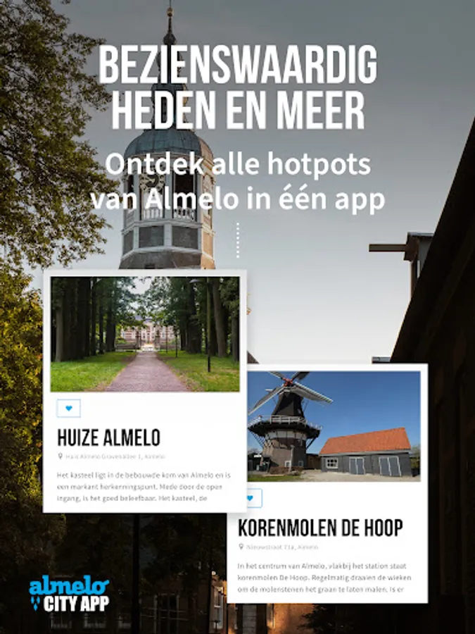 Almelo City App provides information about everything in the field of catering, retail, culture and events in Almelo. With the app you can easily find a restaurant, café or hotel, but also the best shops, shopping areas or information about sights, museums and events.