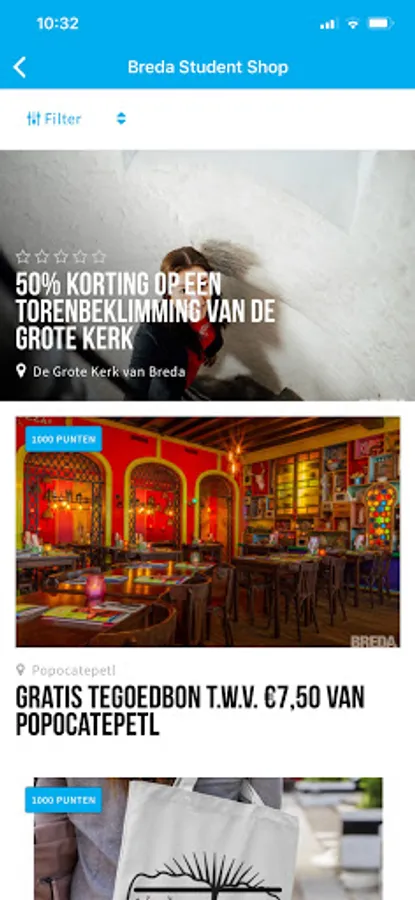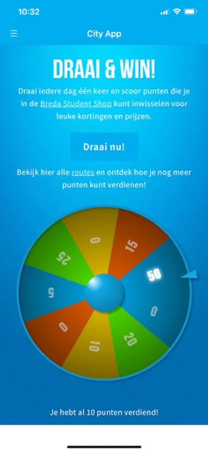 Register as a student and earn loyalty points by spinning the wheel of fortune or by finishing routes that help you to discover Breda. You can spend your loyalty points in the Breda Student Shop. Get large discounts or even free products!