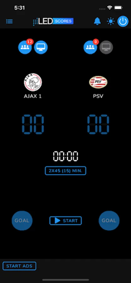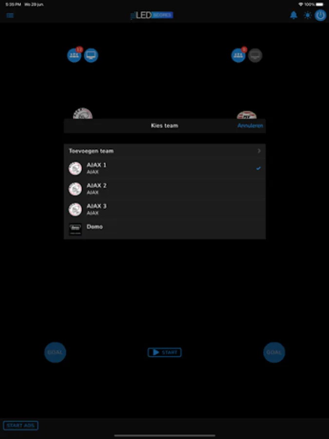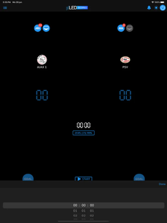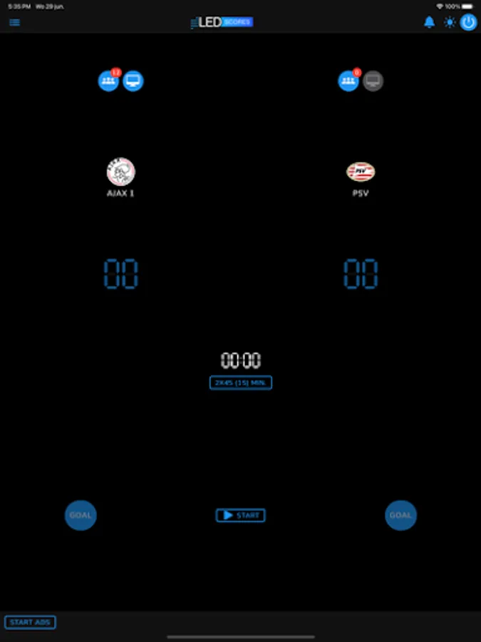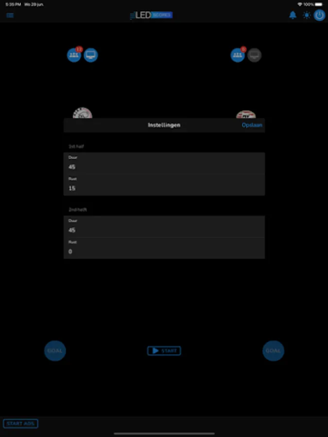 The App LED scores from Ster Software B.V. offers the possibility to customers of LED visuals B.V. to convert their LED screen into scoreboard applications and advertising options. Real-time advertisements, sponsors, time, scores, club logos and running information bars can be set on the LED screen.