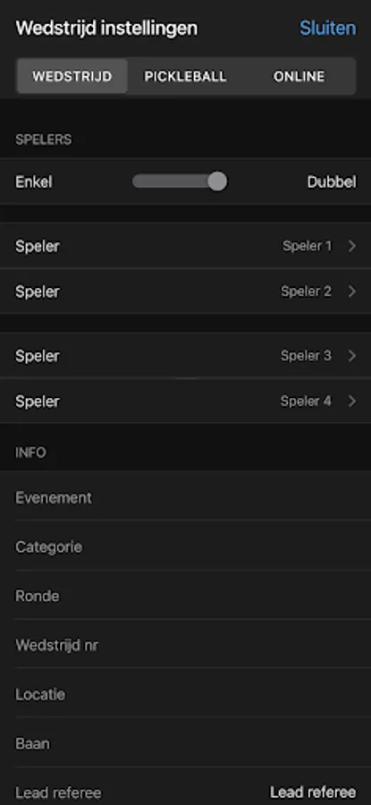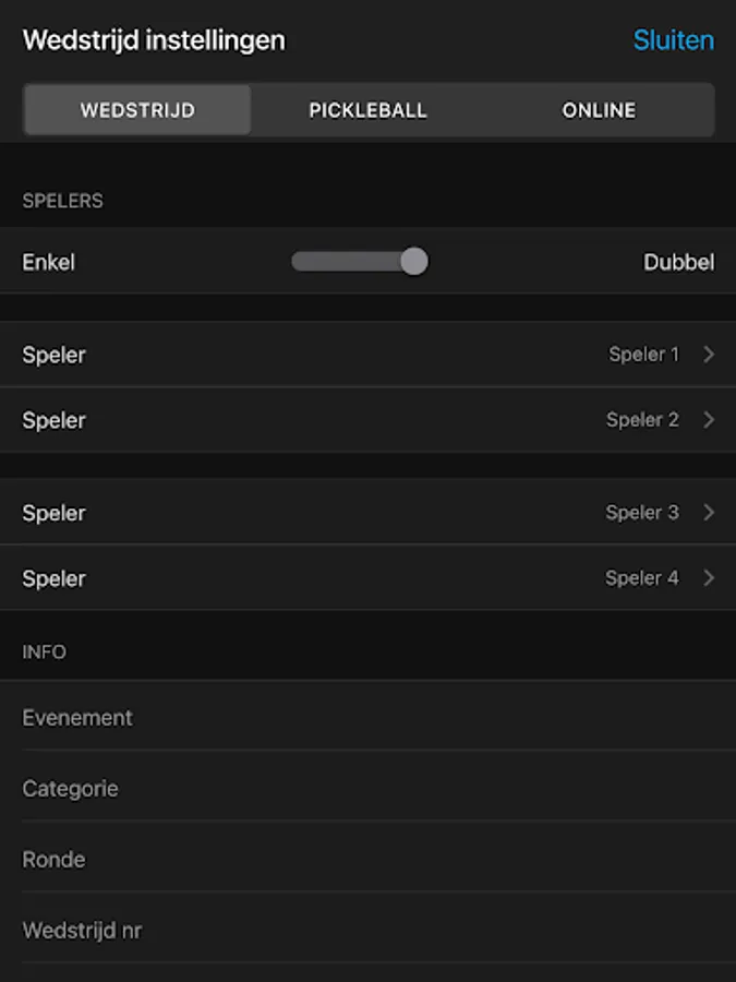 When the match is complete, a detailed match report is available which includes the results of each rally.