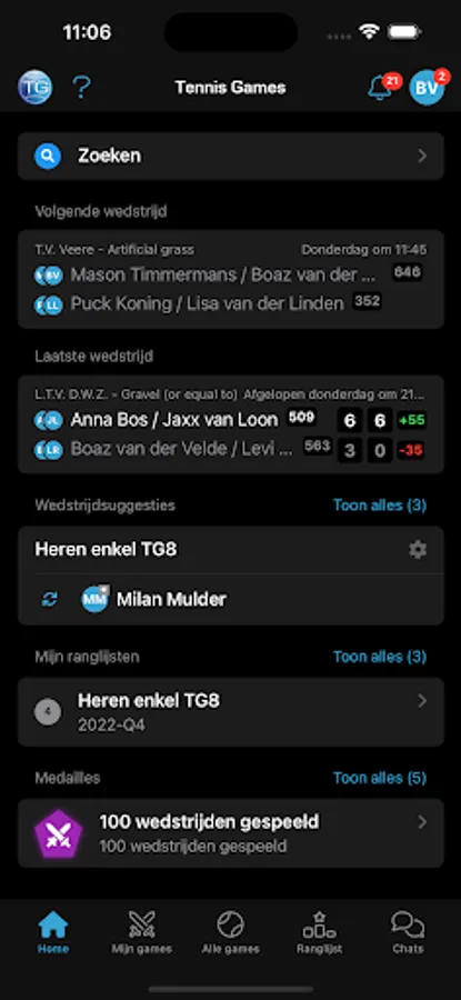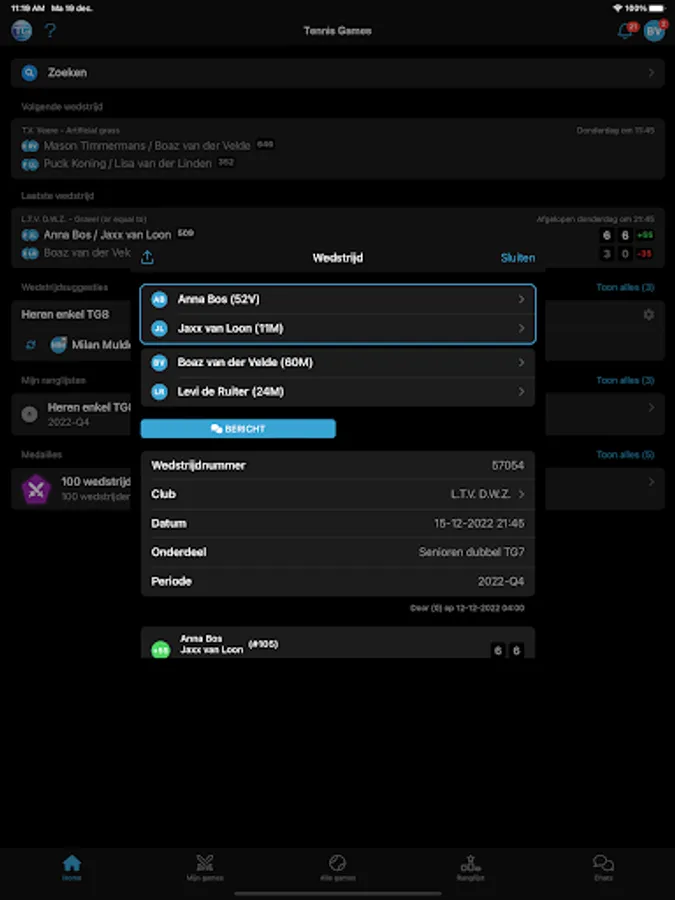 We play tennis matches. In a new way. A way that suits today's tennis player: Easily plan and play matches yourself with the Tennis Games App. Where and when it suits you, against whoever you want. And that in a unique and competitive form throughout the Netherlands. You are cordially invited to participate!