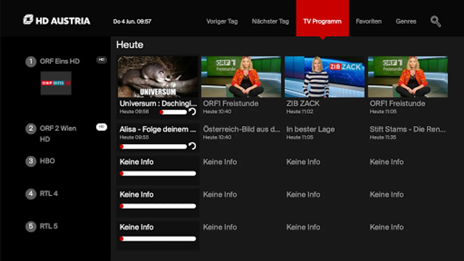 • Find exactly the right thing: practical program overview, personal recommendations, list of favorites as well as search and reminder function