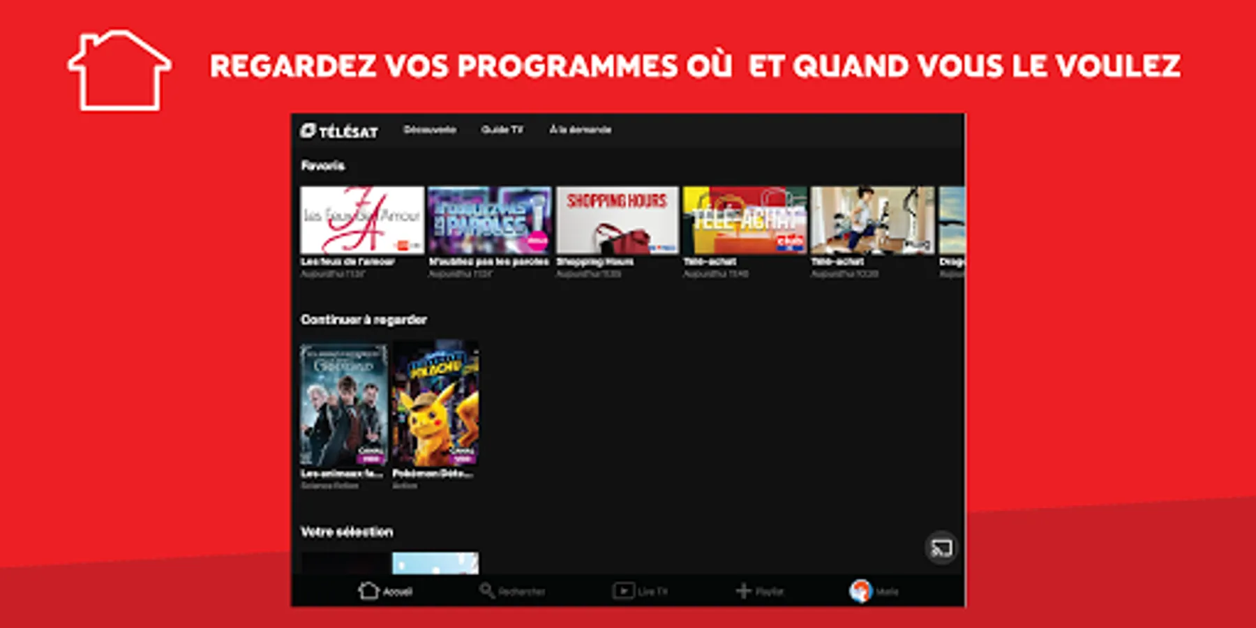 Thanks to the TELESAT APP, watch TV but also movies & series on your smartphone or tablet, even if you are not at home. Take advantage of the content offered by TELESAT anywhere in the European Union whenever you want. Access our catalog of films on demand and watch the films you have rented on your satellite decoder or on our dedicated website (livetv.telesat.be). All you have to do is rent your favorite movie and take it with you everywhere!