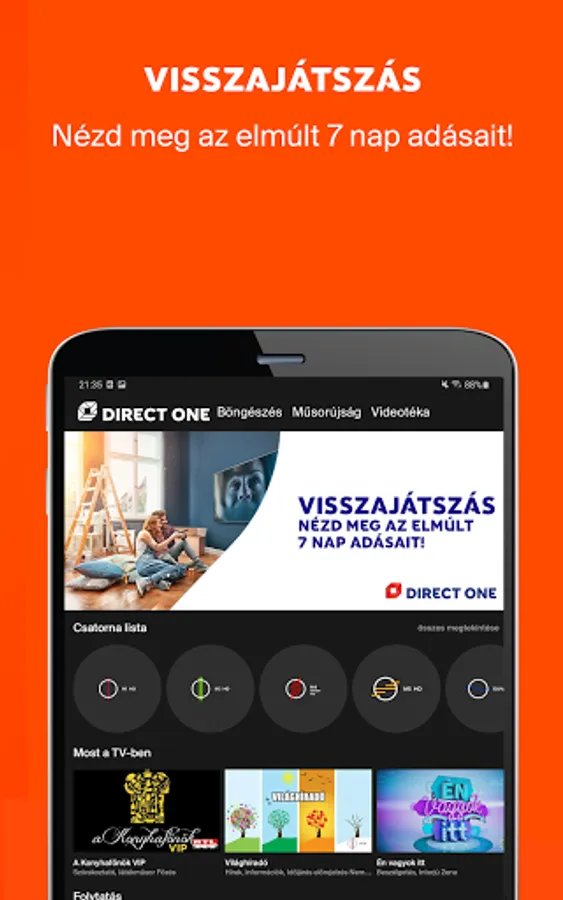 With the Direct One application, Direct Now, you can watch TV on your smartphone, smartphone or even tablet. You no longer have to compromise with the rest of the family, as you can watch up to 5 different shows on 5 different devices at the same time with one registration. And thanks to its convenience extras, you'll never miss your favorite shows.