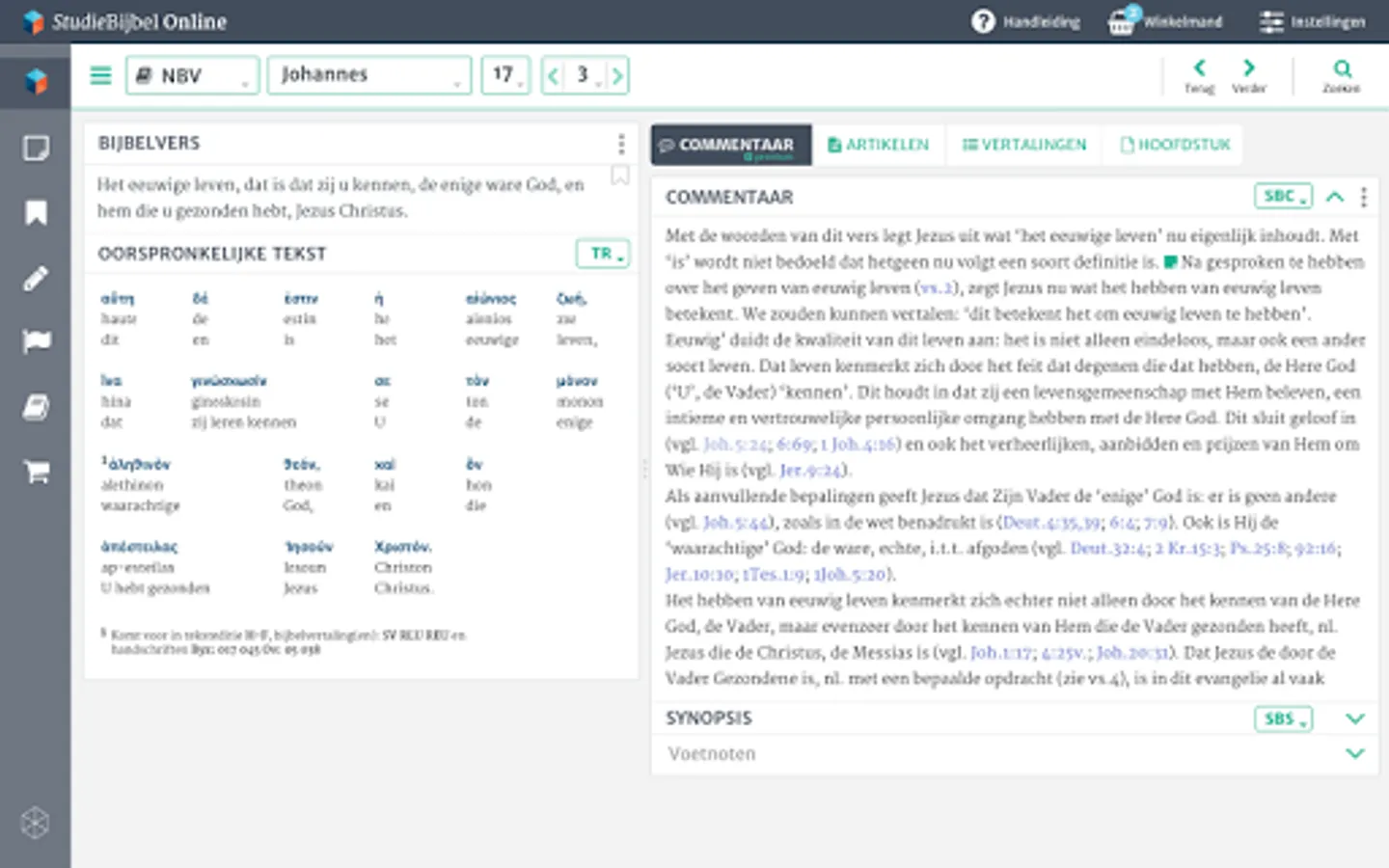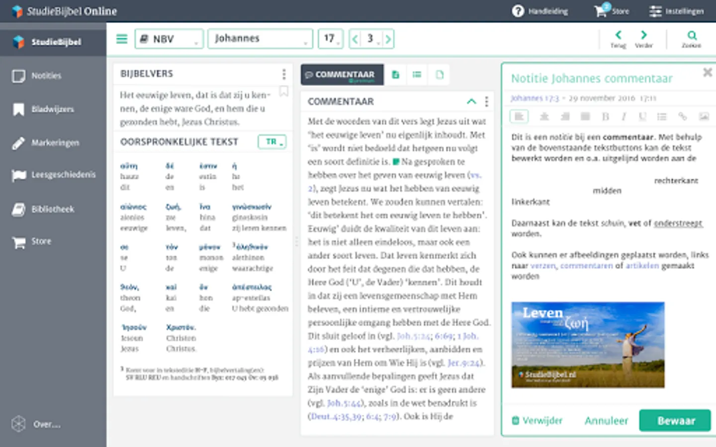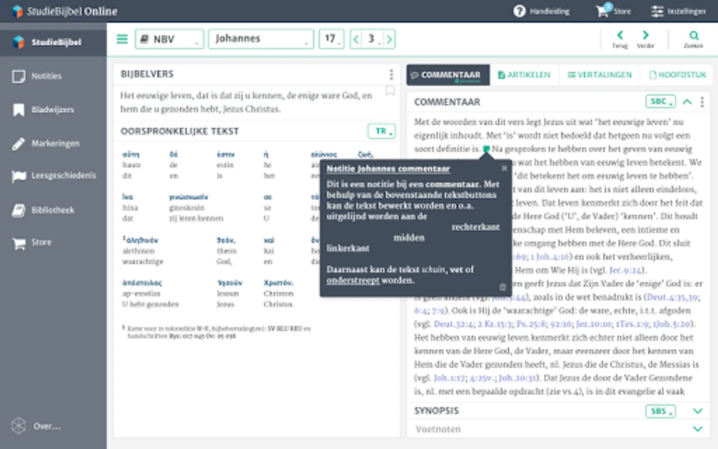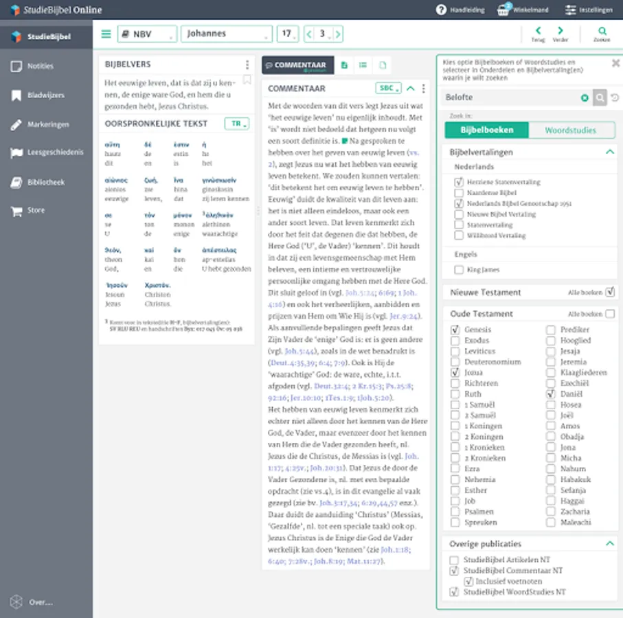 • Original Hebrew and Greek languages, including transcription and literal translation into Dutch and Spanish