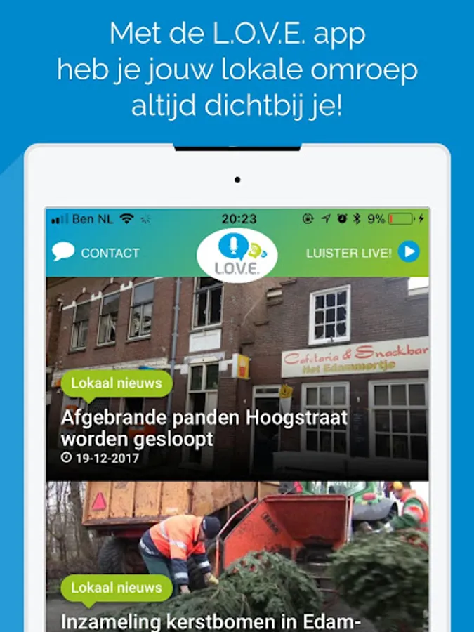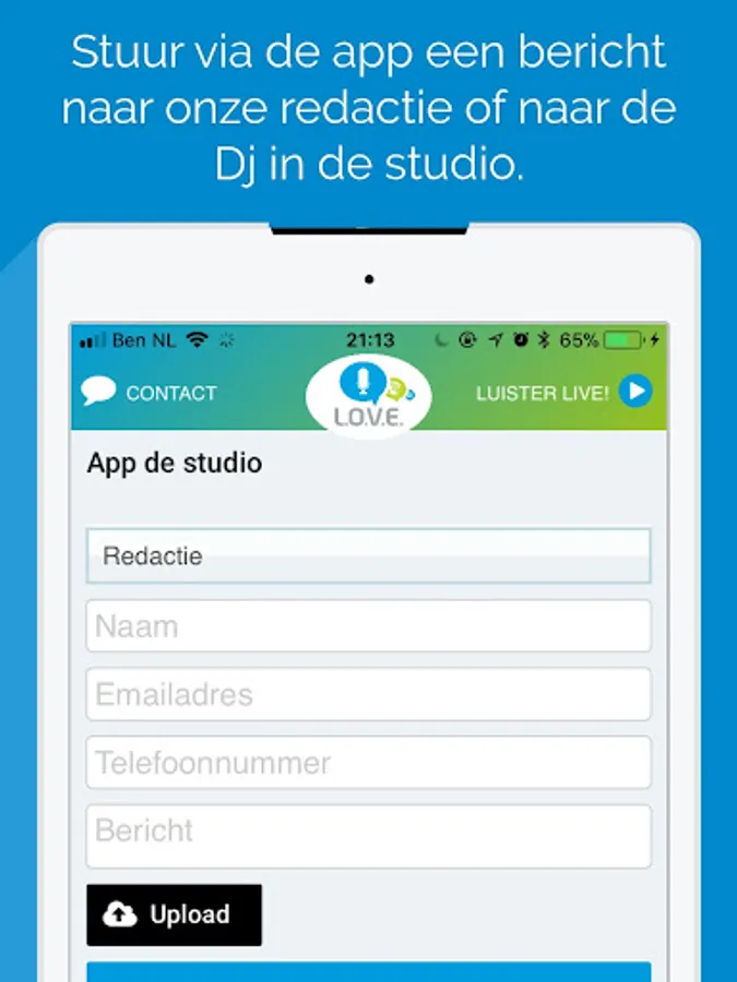 Send the app a message to our editors or the DJ in the studio. Have fun with the app of the Local Broadcast Volendam-Edam.