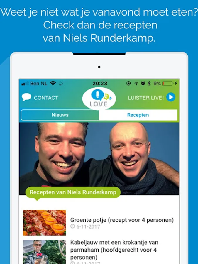 See under "Videos" broadcasts or loose items. Listen during your workout to L.O.V.E. @ The Gym. 3 nice upbeat playlists. Or you do not know what to eat tonight? Check the recipes of Niels Keur.