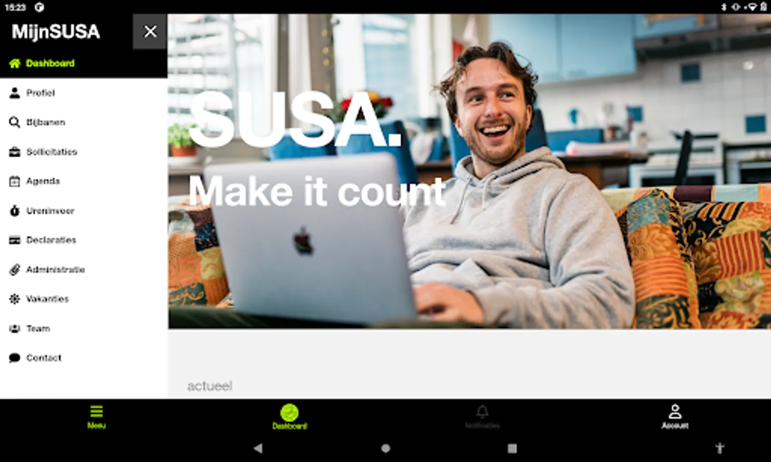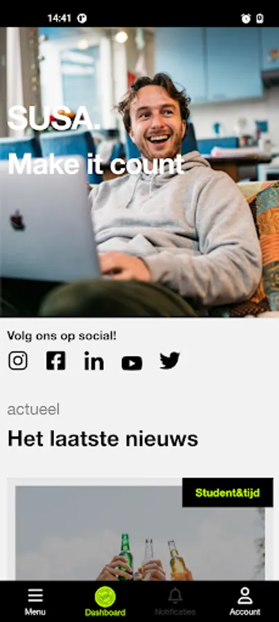 You are a student. But also sportsperson, drinker, festival goer, volunteer, musician or association member. You are a Student & so much more! Because whether it concerns your student life, your student days or your student work: you want to get the most out of it. And that is possible with the help of SUSA. With over 75 years of experience working with students, we are experts in what you need to get the most out of it. This is how we help you make your student days really count. SUSA. Make it count.