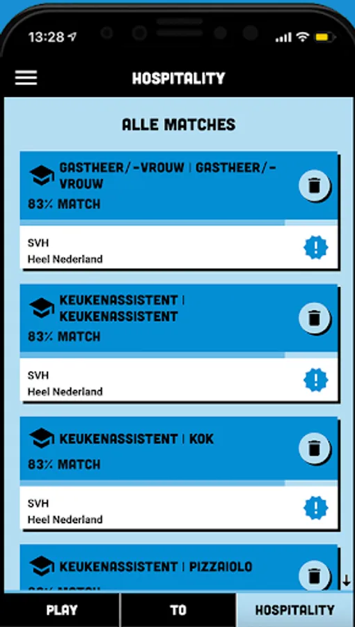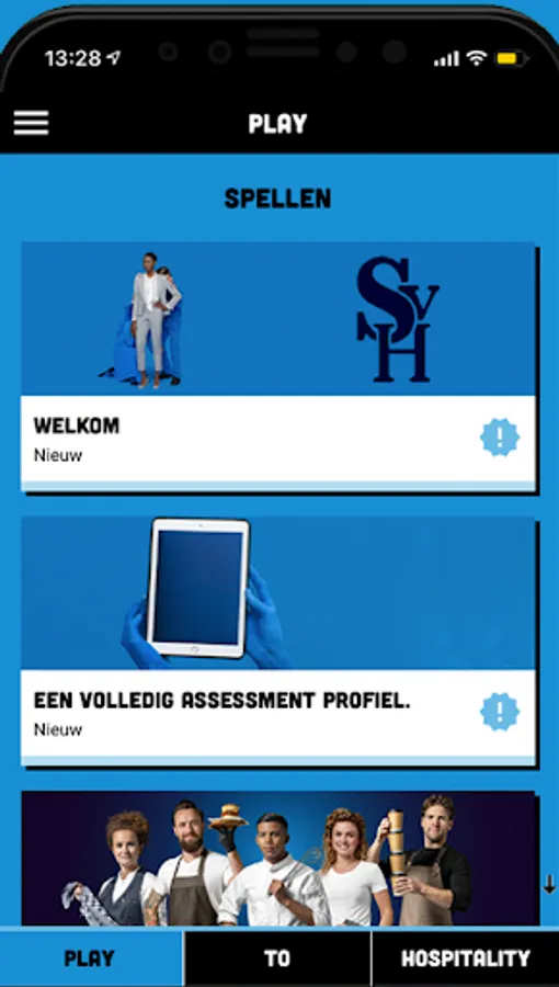 Speel de Play to Hospitality app van SVH om te ontdekken waar jij jezelf kunt verbeteren en verbreden door verder te leren. Aan de hand van games worden jouw skills gemeten. Wanneer je de games hebt doorlopen ontvang je een persoonlijk advies gericht op het volgen van opleidingen om jouw horeca skills verder te verbeteren of om een passende baan te vinden bij jouw talent. Ga voor gaaf, ga voor horeca!