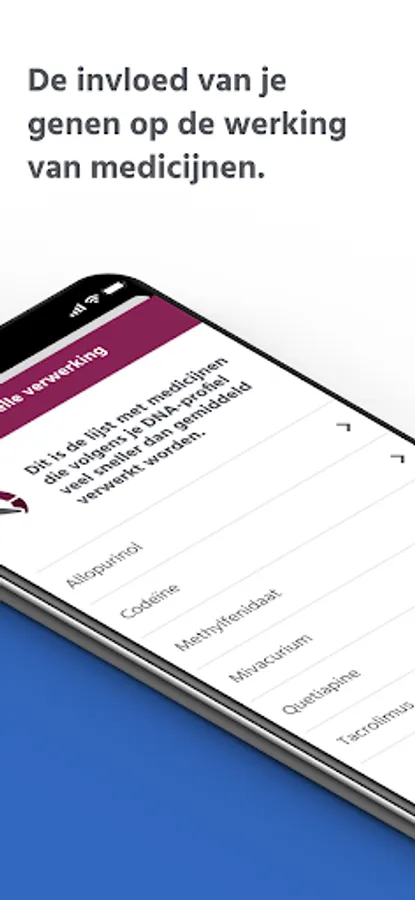 In this app we only provide information about genes in relation to medicines: we have not investigated other matters, such as the hereditary predisposition to certain disorders. You will therefore not read anything about possible hereditary diseases and disorders in this app.