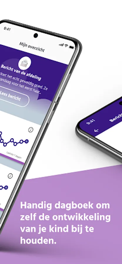 - You can keep track of your child's development in the app. You can enter the weight, nutrition and breast milk and keep photos and notes yourself. Together with the messages from the department, a personal diary is created with all kinds of events that you can save as a PDF.