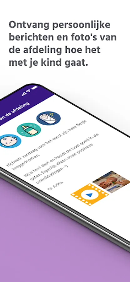- From the ward you will receive personal messages and photos of how your child is doing when you are not able to be there. That is very reassuring, for example when you wake up in the morning. These messages are stored in your personal diary.