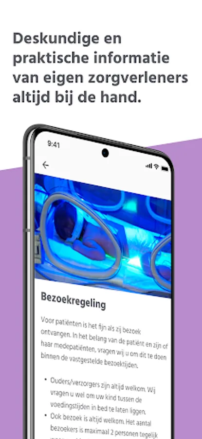 - An extensive library with a lot of information from your own hospital and a glossary. This way you always have all the information at hand and you can read everything at ease.