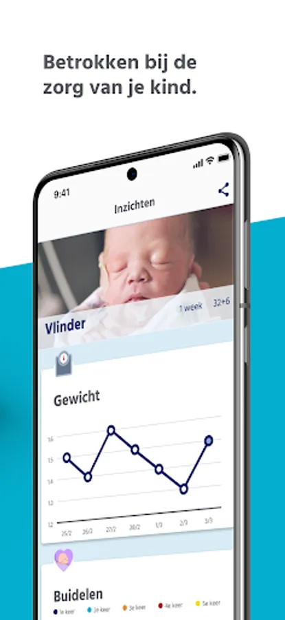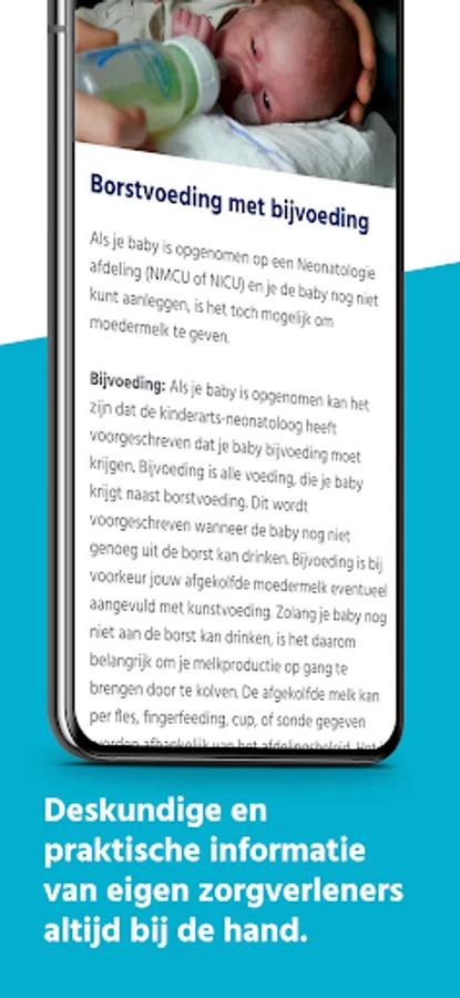 OuderKind app is Máxima MC's digital platform specially developed for parents with a baby in the neonatology department. It gives you step-by-step expert and practical information. In addition, you can keep track of your baby's development yourself, so that you are more involved in the care and development of your child.