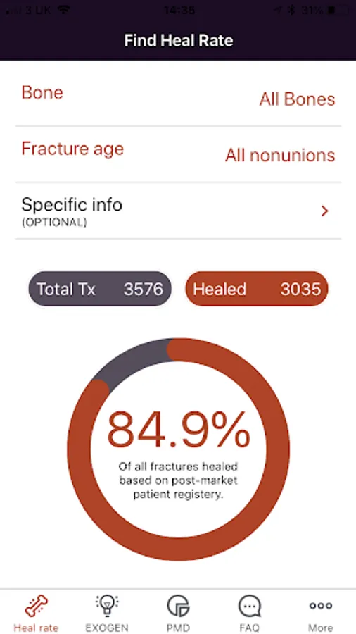 This App has been developed to support your review of the data. Within this App, there are multiple references to fracture types and heal rates by bone. Bioventus welcomes you to review the data for the most applicable information relevant to your practice.