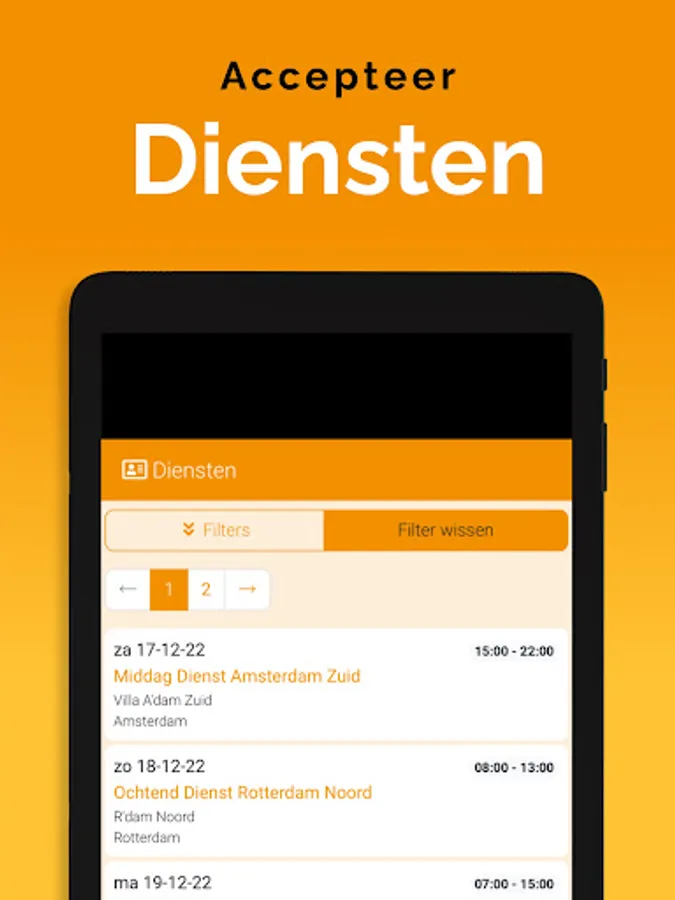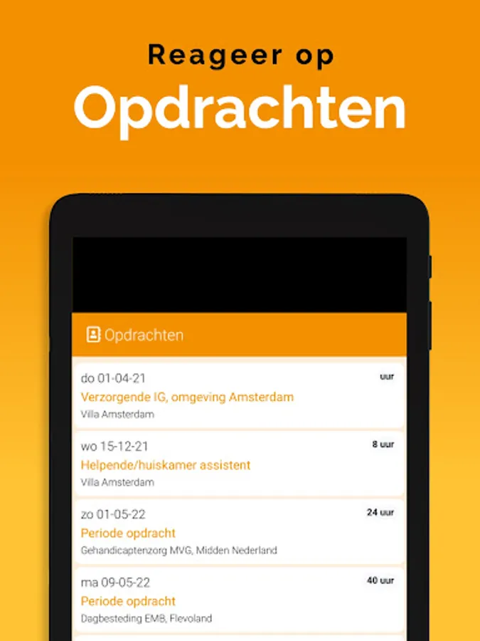 The App is linked to the system, so that information is always up-to-date, via a clear dashboard. In addition, important notifications, such as newly available assignments, arrive on the device via a push notification. That way you don't overlook anything. Changes are also immediately visible, also in the agenda. So you are always in the right place.