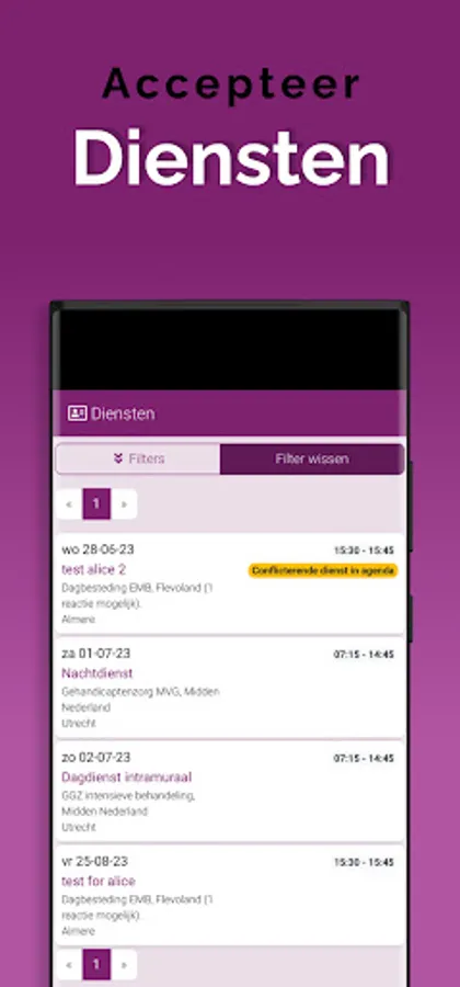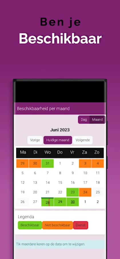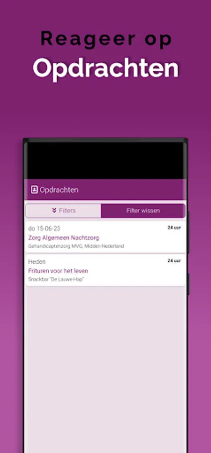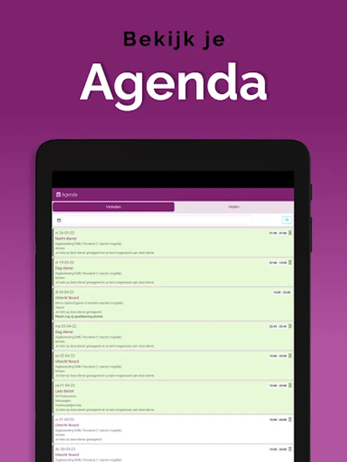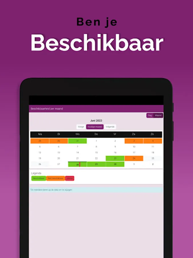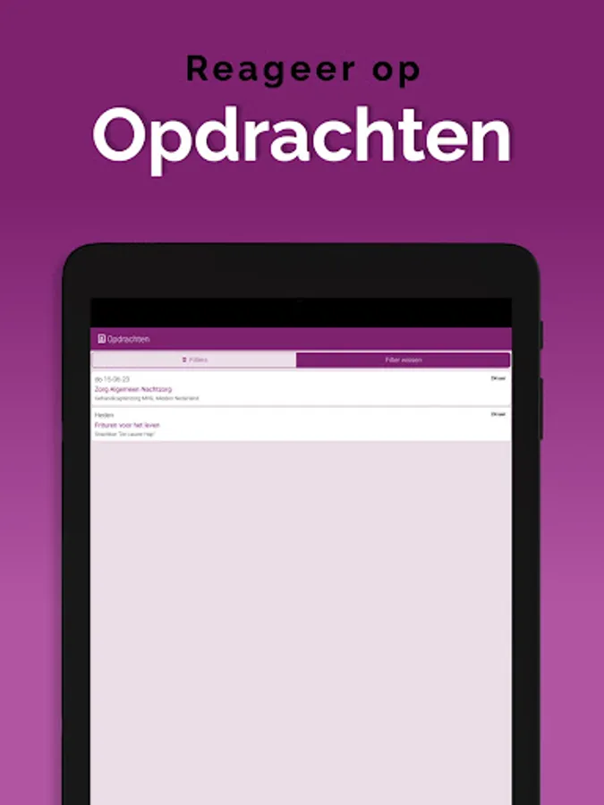The App is linked to the system, so that information is always up-to-date, via a clear dashboard. In addition, important notifications, such as newly available assignments, arrive on the device via a push notification. That way you don't overlook anything. Changes are also immediately visible, also in the agenda. So you are always in the right place.