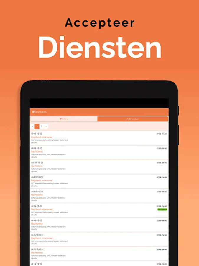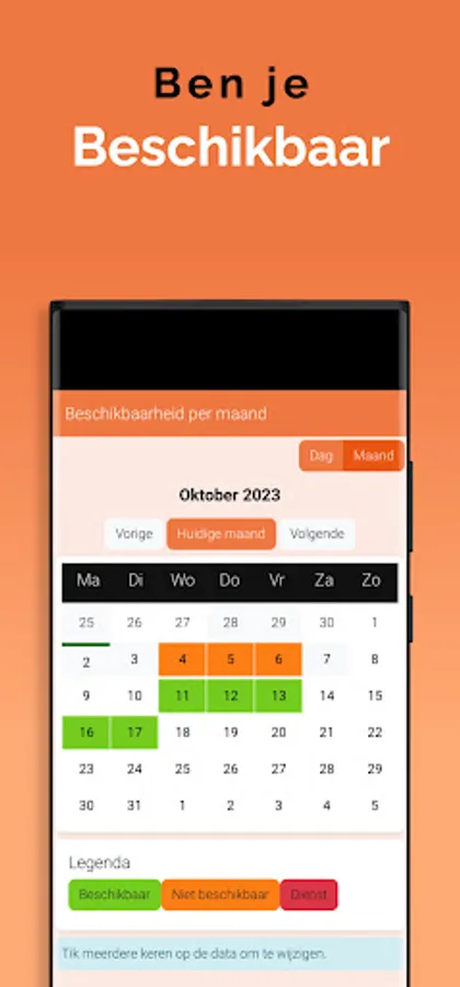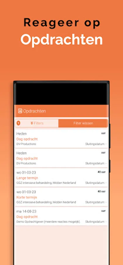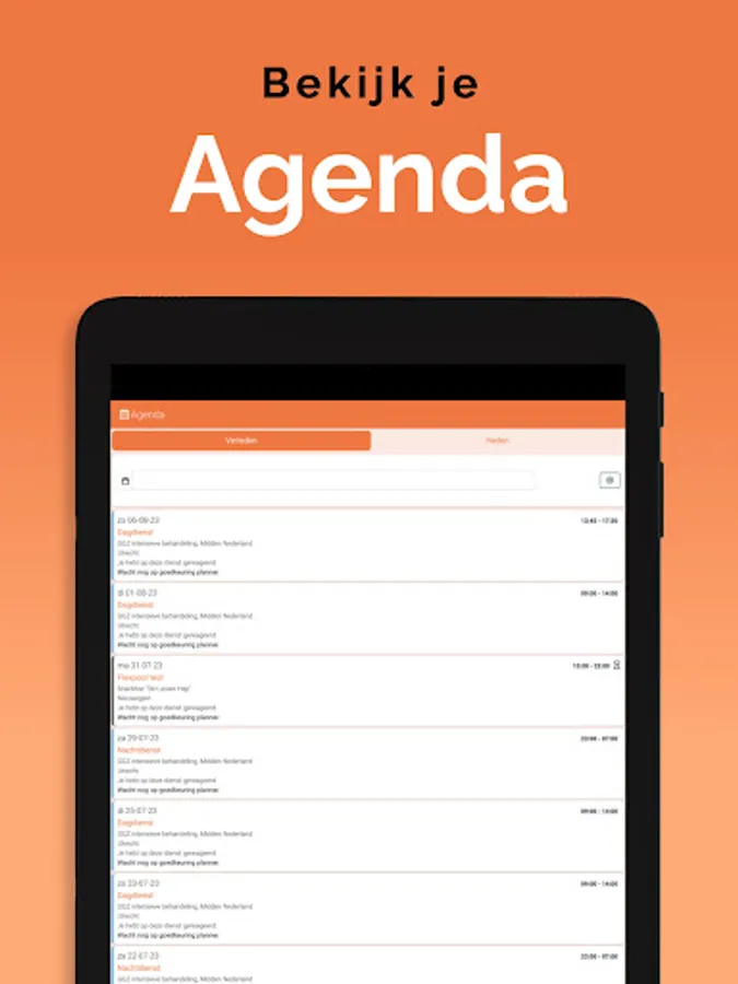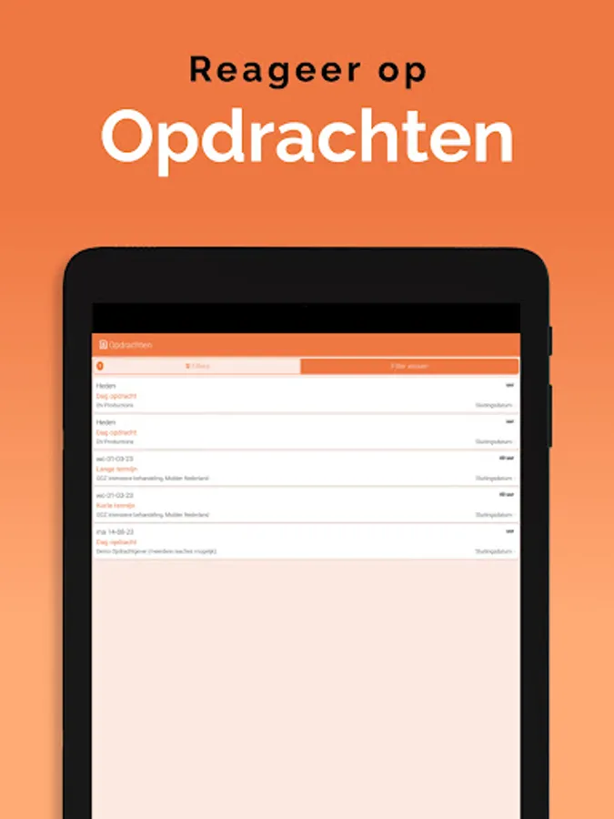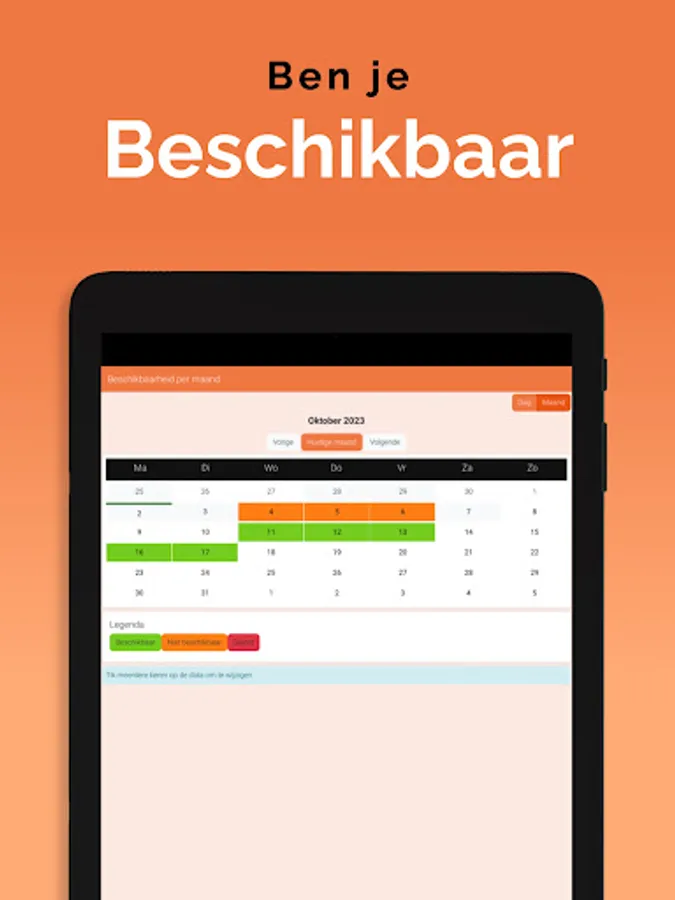 The App is linked to the system so that information is always up to date, via a clear dashboard. In addition, important notifications, such as newly available assignments, arrive on the device via a push notification. This way you won't overlook anything. Changes are also immediately visible, also in the agenda. So you are always in the right place.