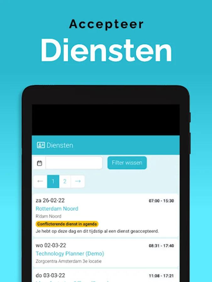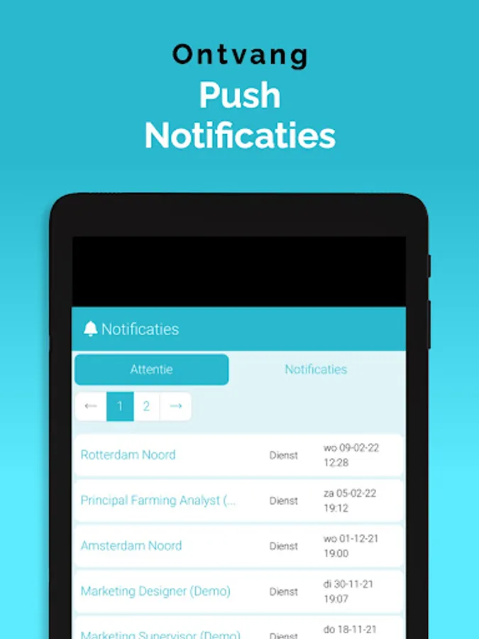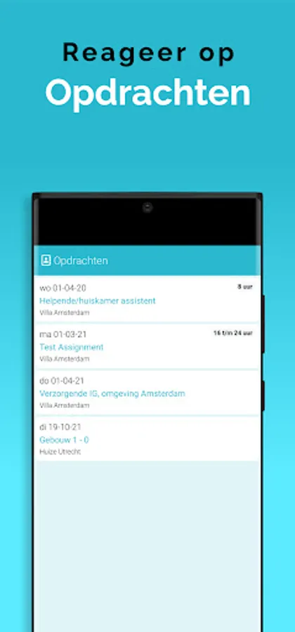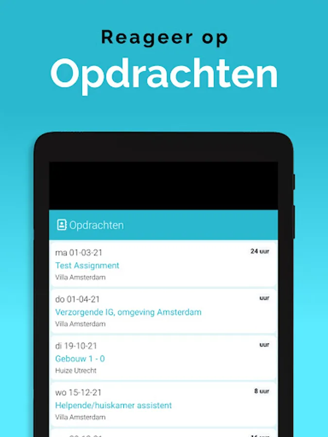 The App is linked to the system, so that information is always up-to-date, via a clear dashboard. In addition, important notifications, as newly available assignments, arrive on the device via a push notification. That way you don't overlook anything. Changes are also immediately visible, also in the agenda. So you are always in the right place.
