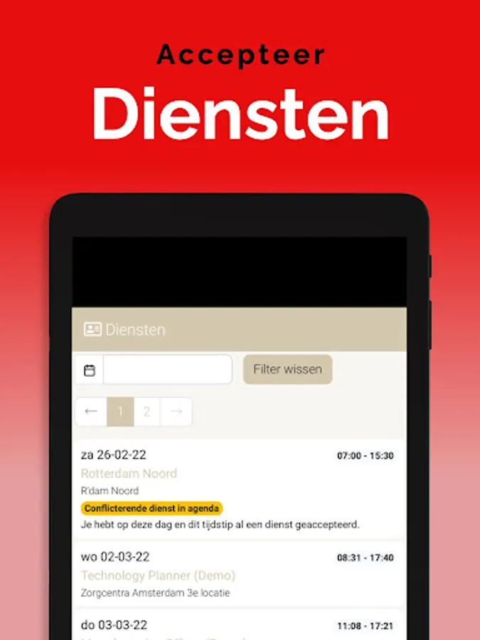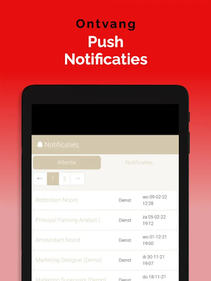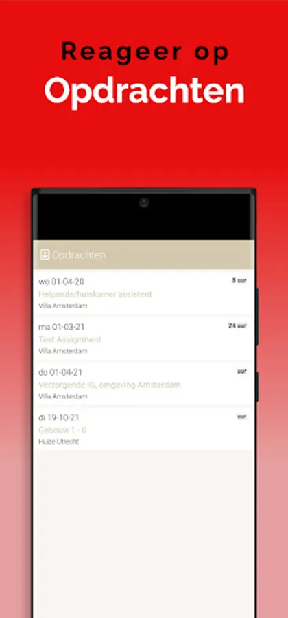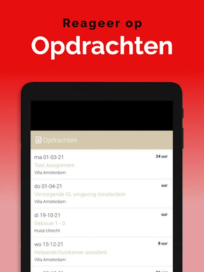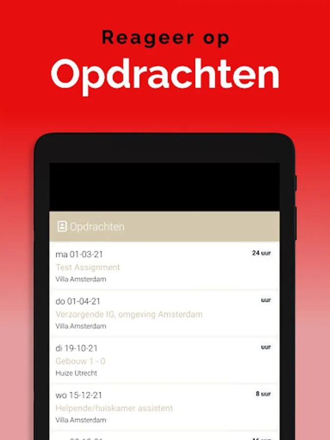 The App is linked to the system so that information is always up to date, via a clear dashboard. In addition, important notifications, such as newly available assignments, arrive on the device via a push notification. This way you won't overlook anything. Changes are also immediately visible, also in the agenda. So you are always in the right place.