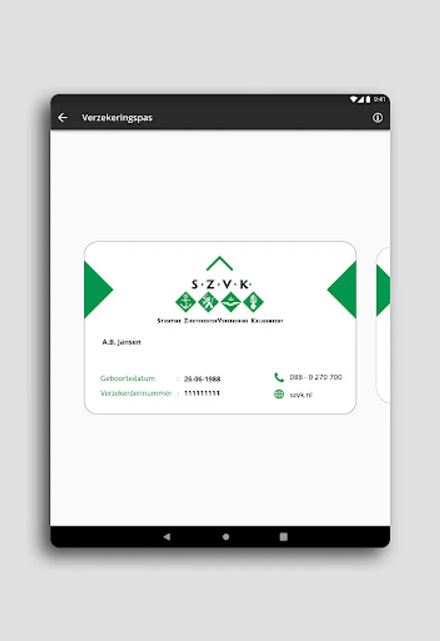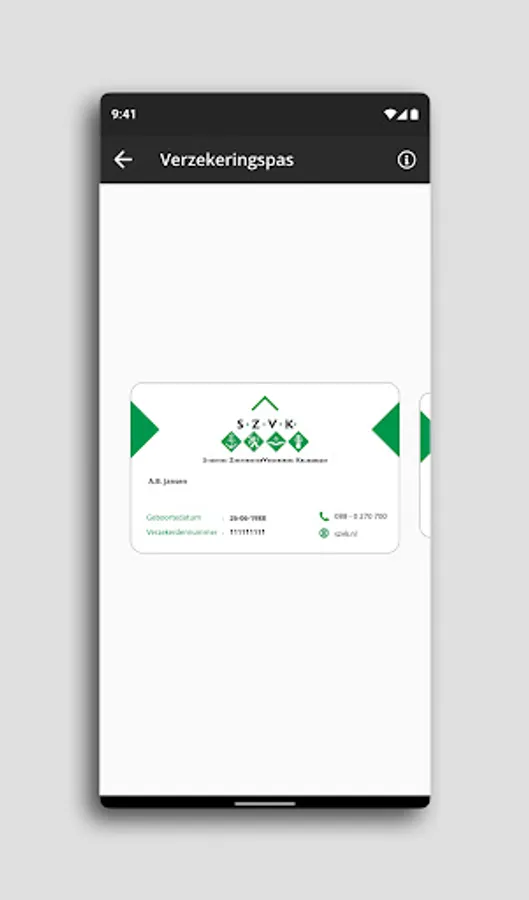With the MijnSZVK app you always have your digital insurance card in your pocket, even without an internet connection!