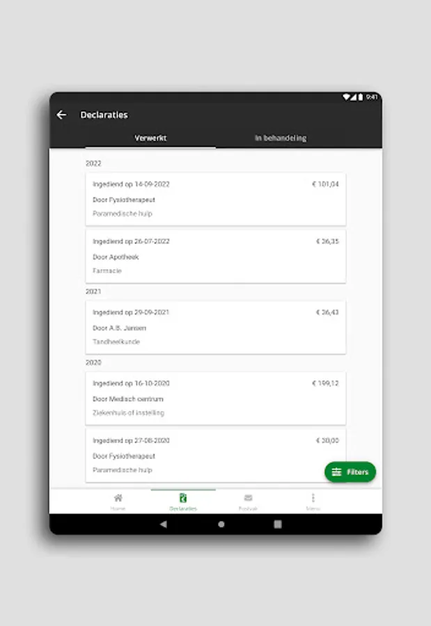 • claim medical expenses by taking a photo of the bill in the app or by uploading the digital bill