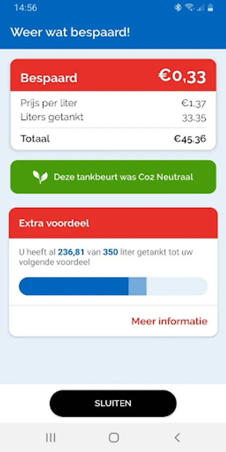 But that's not all! You will then receive 1 cent extra discount per liter with each refueling and save each refueling in order to receive an even more extra discount. You will receive 5 cents extra discount per liter every time after you have filled up 350 liters on your next refueling.