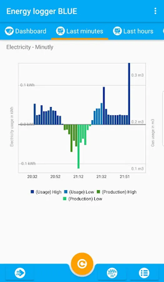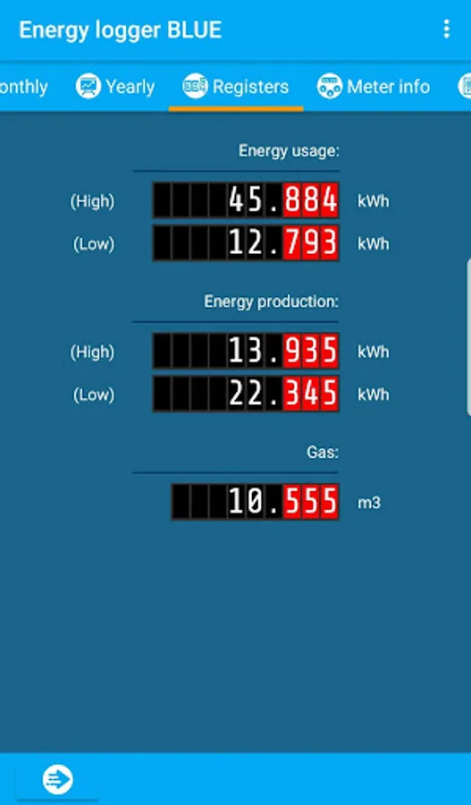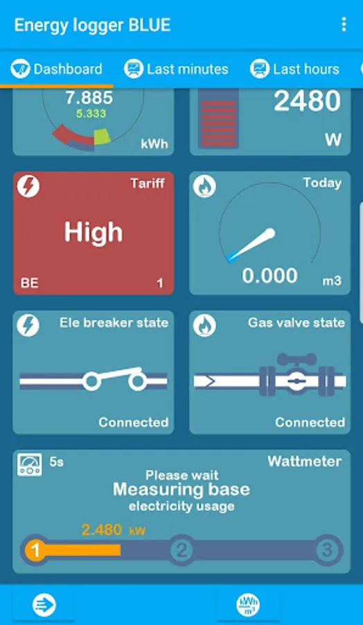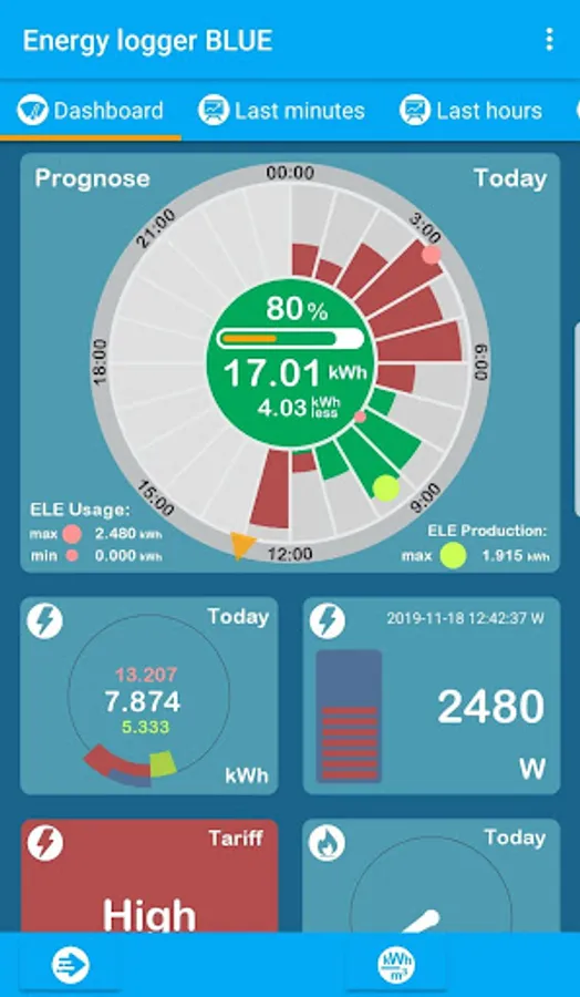 “Energy logger Blue” has enough storage to log and keep track of your hourly, daily, monthly and yearly usage. Zoom in on the energy usage for the past hour or see in a glance how much energy was used this week or last month.