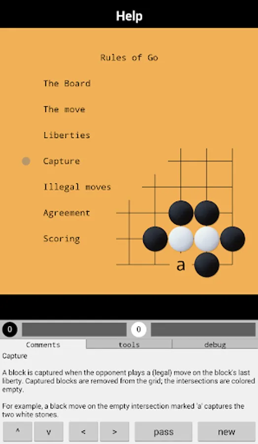 If you are new to the game of Go, an introduction as well as some links to more information is included in the help (only available in English).