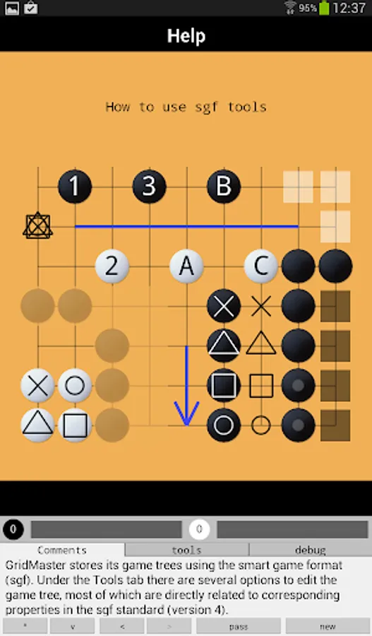 - Full featured SGF reader/editor (perhaps the only Android app to support all properties in SGF4)