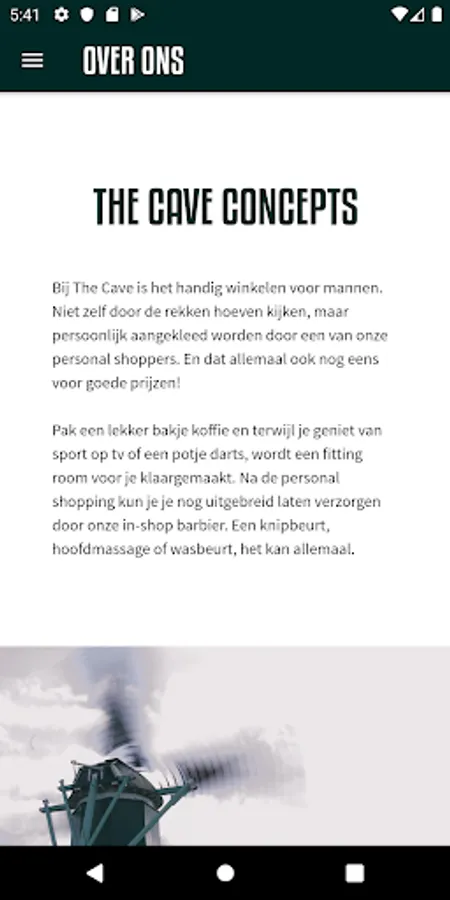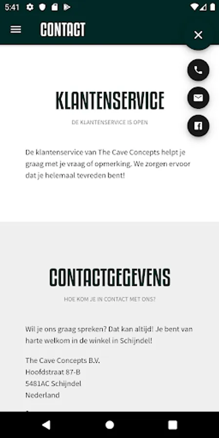 With The Cave App you can easily buy the latest and nicest men's clothing, but you can also view and return your saved CavePoints directly. You can also see all the information you need about The Cave in Schijndel.
