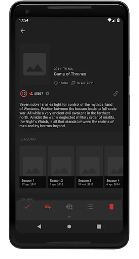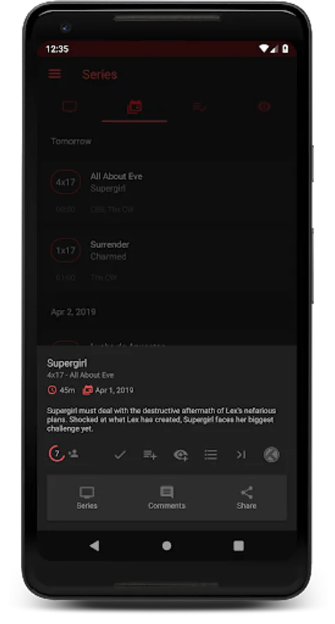 Are you in a movie theater and you want to share a movie with your friends, with ONE push of a button you're able to do so. Manage your own collection, viewed episodes and movies and keep lists in which your media can be added, but much more, including synchronizing to and from Trakt.