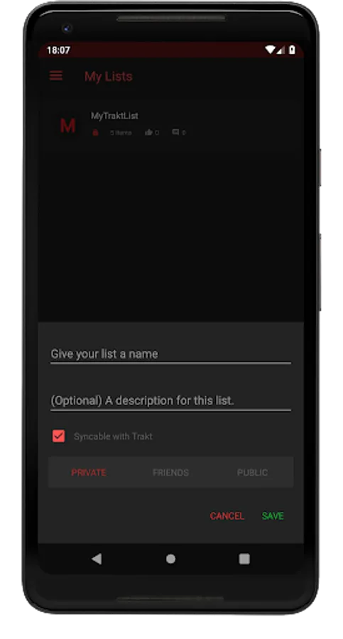 • Managing own lists that can be synchronized with Trakt (adjustable).