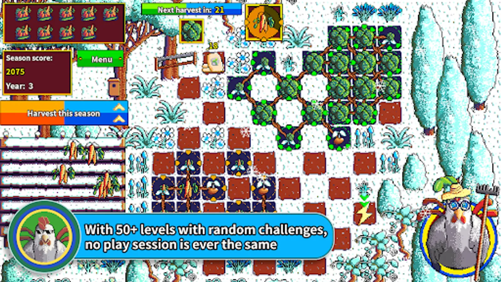 It lets you plant, grow and harvest vegetables across 50 randomized levels and 3 different game modes. Adapt to Mother Natures challenges or