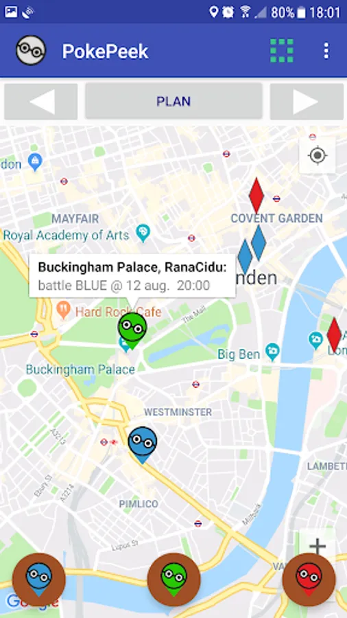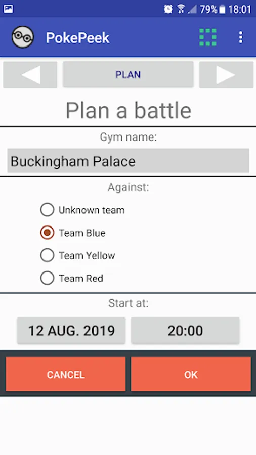 The app also allows players to inform each other about present and future Stop or Gym actions. This has many benefits. For example, it makes it easy for you and your (un)known fellow trainers to attack a foreign Gym at a certain, planned moment. Note that only trainers of the same team will be informed about a planned attack!
