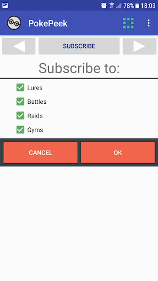 * Subscribe to actions about lures, battles, raids and/or gyms in a certain area