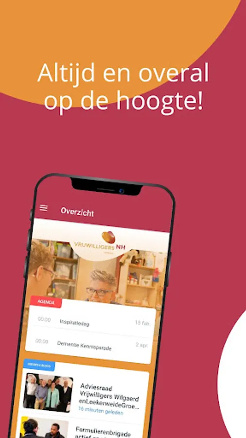 There is the VrijwilligersNH app especially for all volunteers from VrijwilligersNH and the employees of WilgaerdenLeekerweideGroep. Stay up to date with the latest news, fun discount promotions, inspiration days, events and more with this app! The app is easy to use and provides direct access to the VrijwilligersNH website and social media. In addition, you can contact us directly and easily declare your travel expenses. Informative, easy and fun: that's the VrijwilligersNH app!